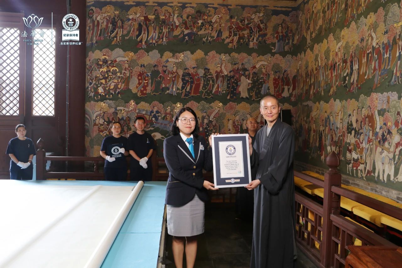 万德法师手书《华严经》经塔,经吉尼斯世界纪录认证官严格现场认证,正式荣获