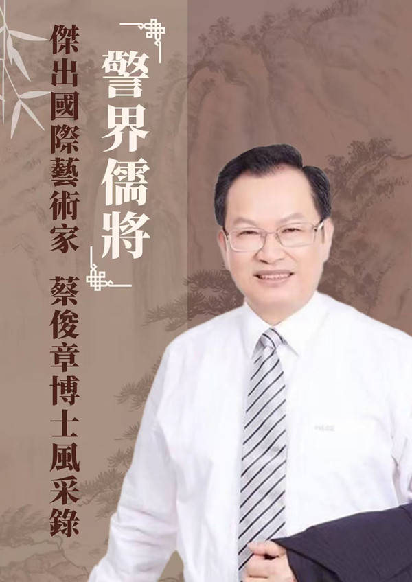 「笔墨红尘行路似云一警界儒将蔡俊章」,承袭东方水墨精神,并从生活细微处酝酿创作灵感,以「墨虾」作品闻名。