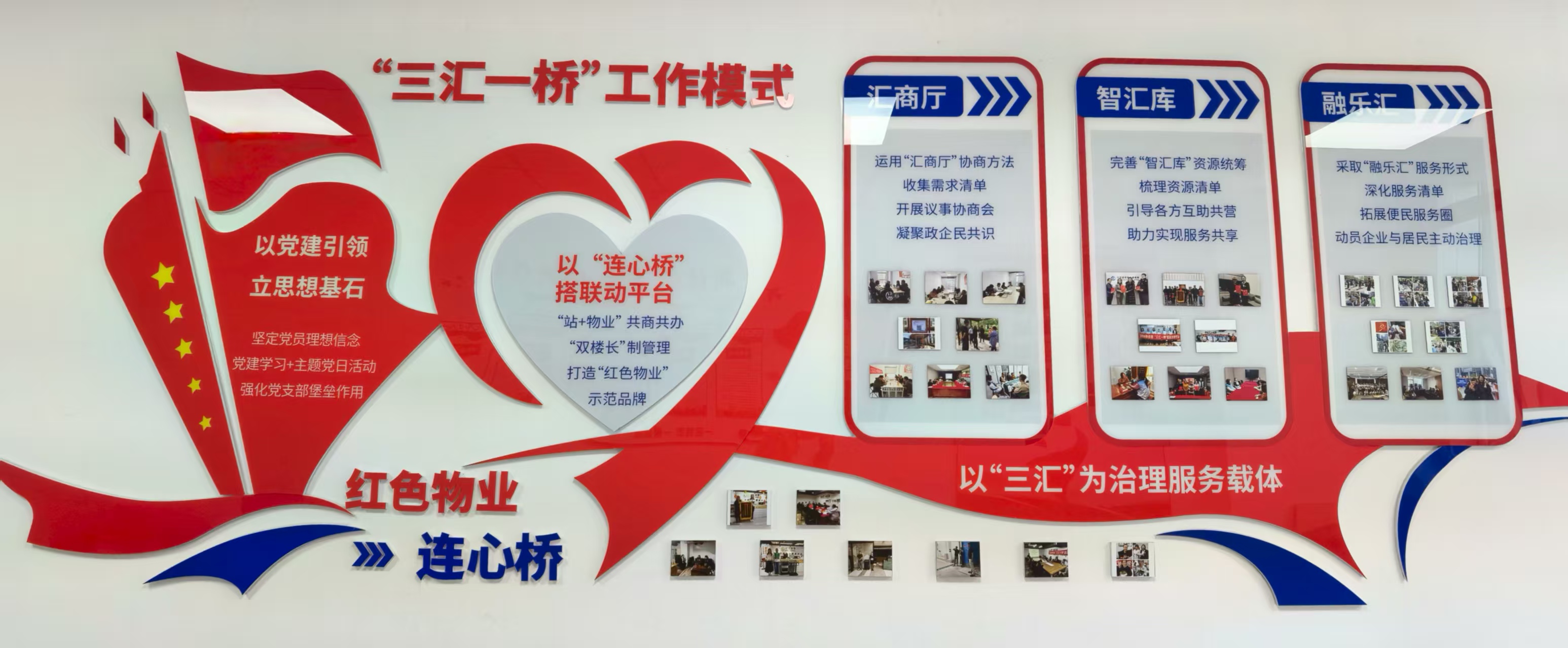 ——建立“红色物业展示区”,亮明红色物业身份,展示红色物业服务,让辖区居民及企业及时全面的了解治理工作的内容及成果。