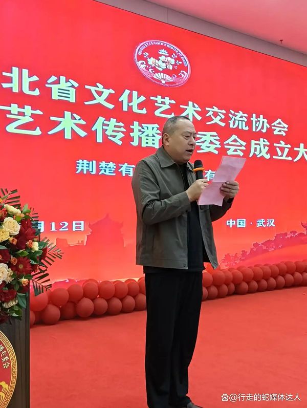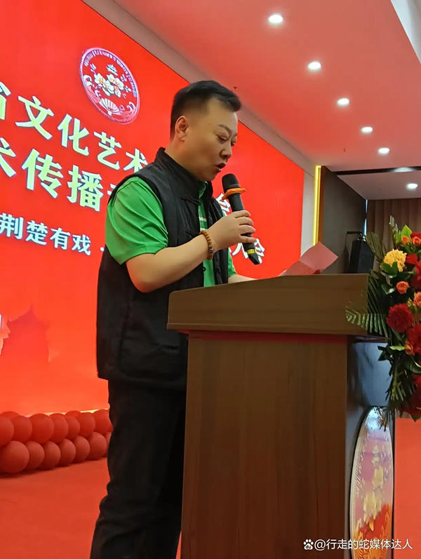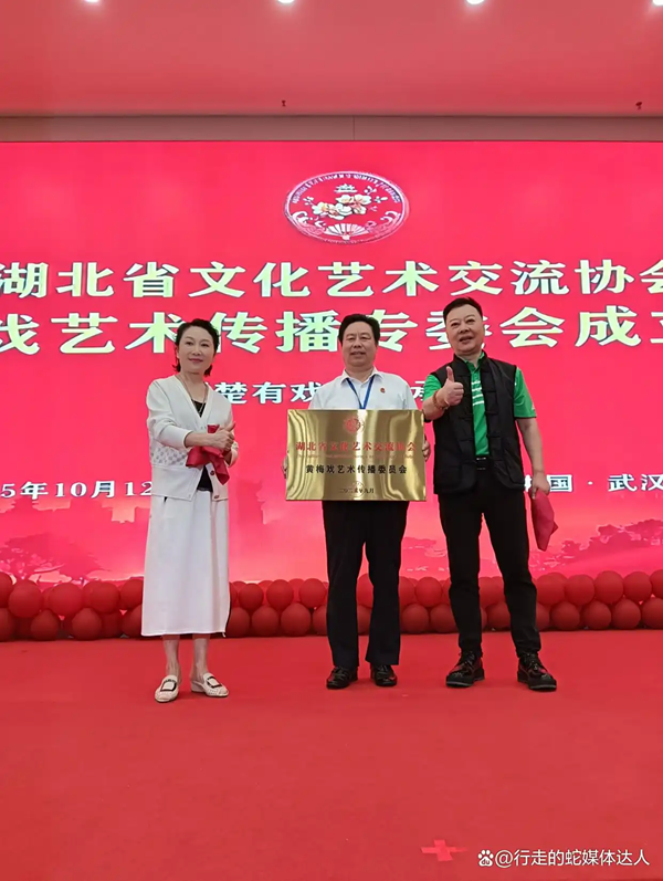 大会伊始,主持人刘继红逐一介绍出席嘉宾,现场掌声此起彼伏。随后,湖北省文化艺术交流协会副秘书长谭维帖上台宣读省文协关于成立黄梅戏专委会的正式批文,为大会奠定权威基调。在全场嘉宾的注视下,省文协秘书长安维静、黄梅戏专委会主任夏俊与著名黄梅戏名家张辉共同上台揭牌,红色幕布缓缓落下,“湖北省文化艺术交流协会黄梅戏艺术传播专委会”铭牌正式亮相,标志着专委会就此宣告成立。